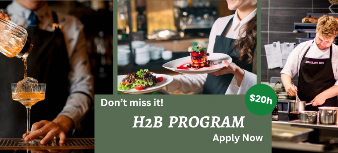 Programul H2B, prin viza H2B aferenta, este un program de munca prin care ai posibilitatea sa muncesti in Statele Unite la un singur angajator. Angajatorul nostru H2B este un Private Country Club iar recrutarile de personal se desfasoara in fiecare an incepand cu luna mai pentru diferite pozitii in cadrul clubului.